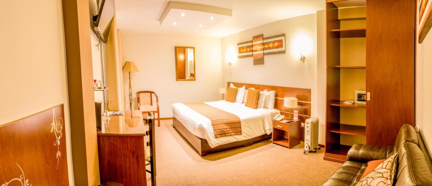 The carpeted guest rooms of the Hotel La Cuesta de Cayma are equipped with cable TV channels and a work desk. They are decorated with warm colours andinclude private bathrooms.