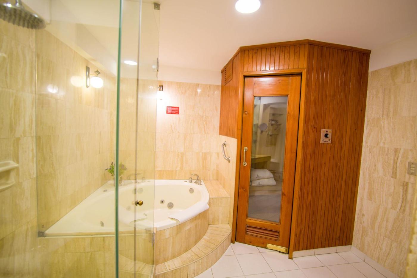 Suite with Jacuzzi and Sauna. This suites standout features are the hot tub and sauna. This suite features 1 living room, 1 separate bedroom and 1 bathroom with a bath and free toiletries. The air-conditioned suite features a flat-screen TV with cable channels, a minibar, a wardrobe, a safe deposit box as well as city views. The unit has 1 bed. ;